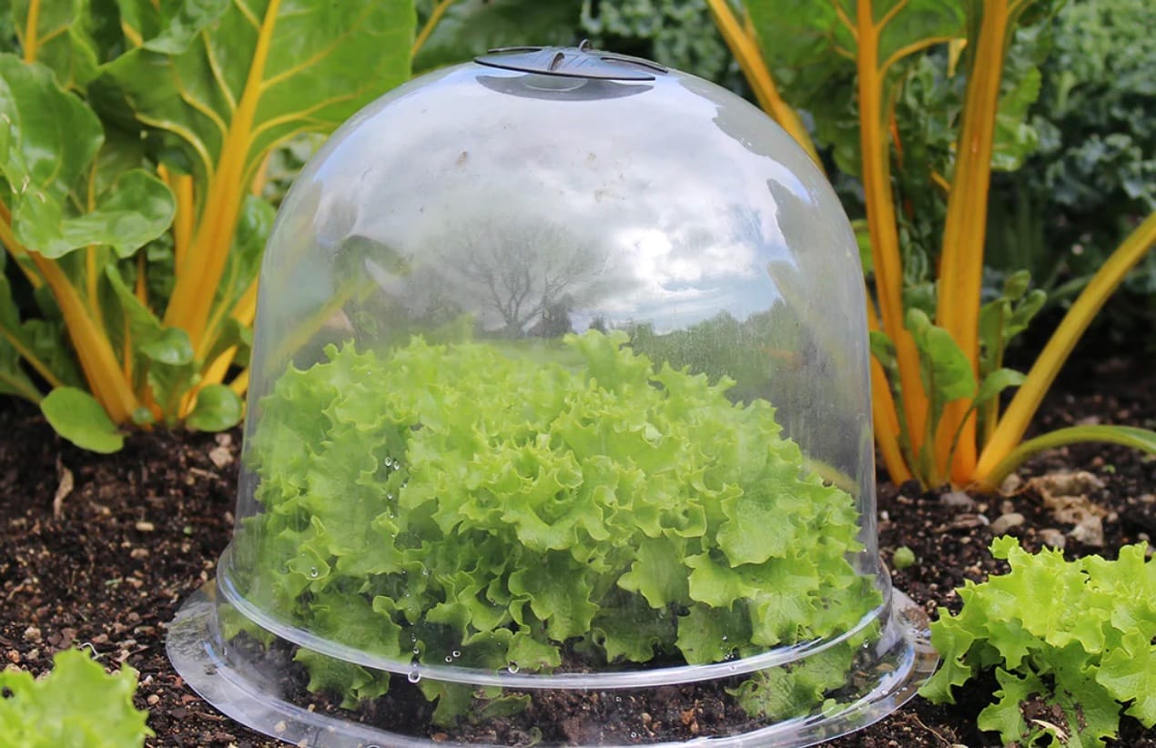 For individual plants, old glass or plastic bowls placed over them work well too.
