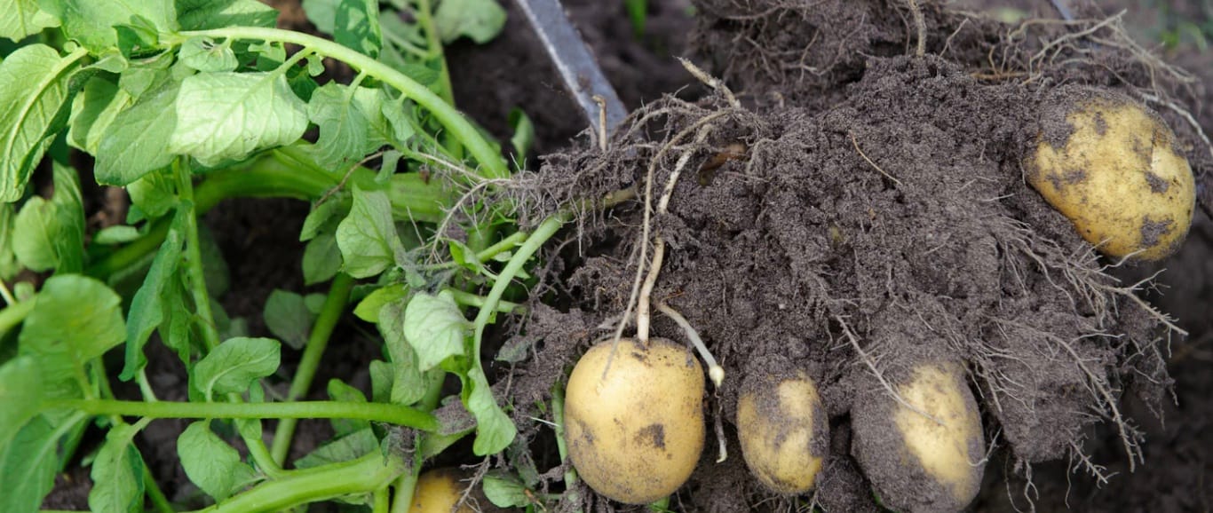Potatoes — plant them, then keep mounding mulch on top as they grow. The higher the mulch, the more potatoes you get. Simple.