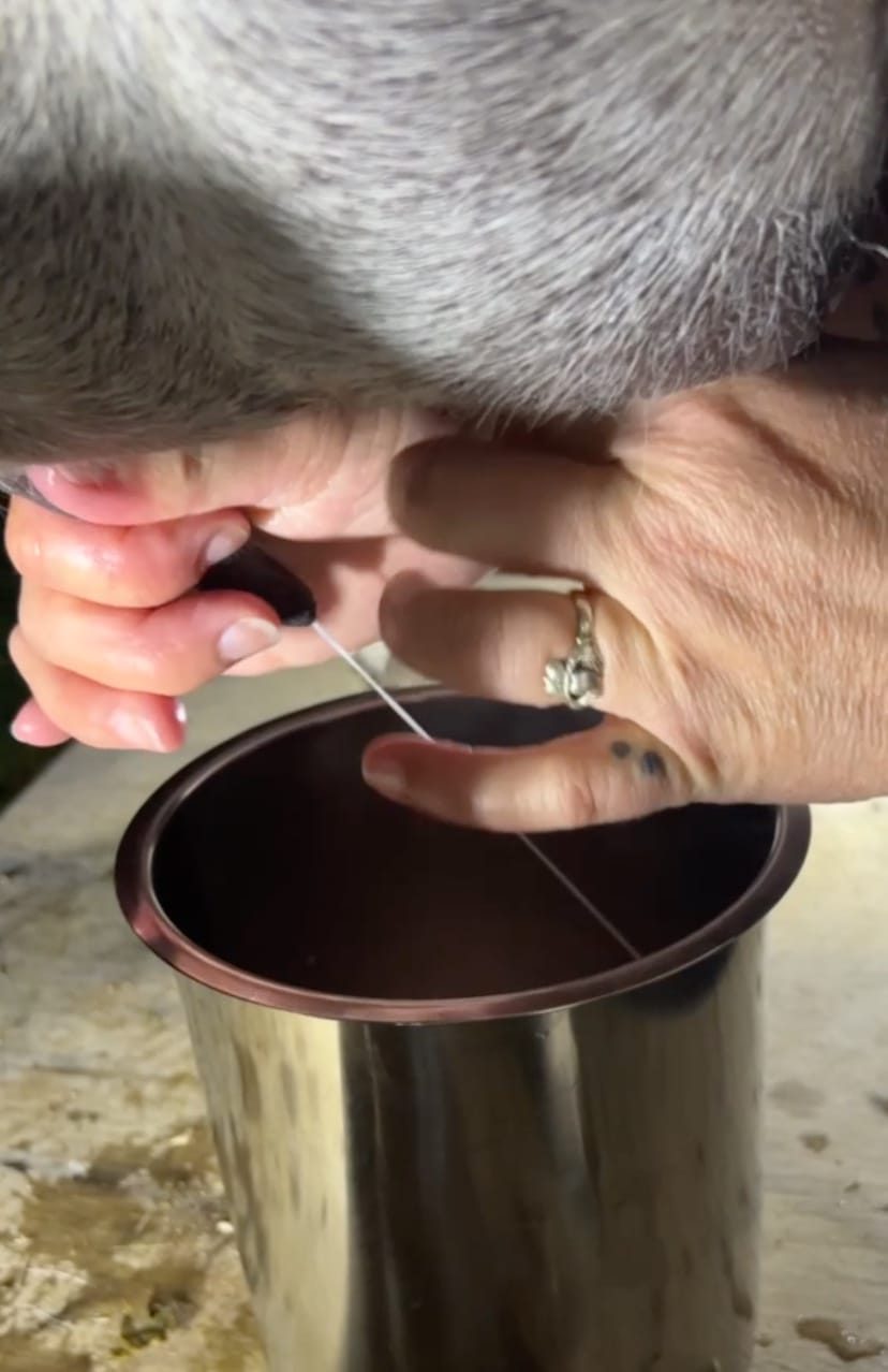 Start by cleaning the udder with warm water and a clean cloth. This not only keeps things hygienic but also stimulates milk let-down.