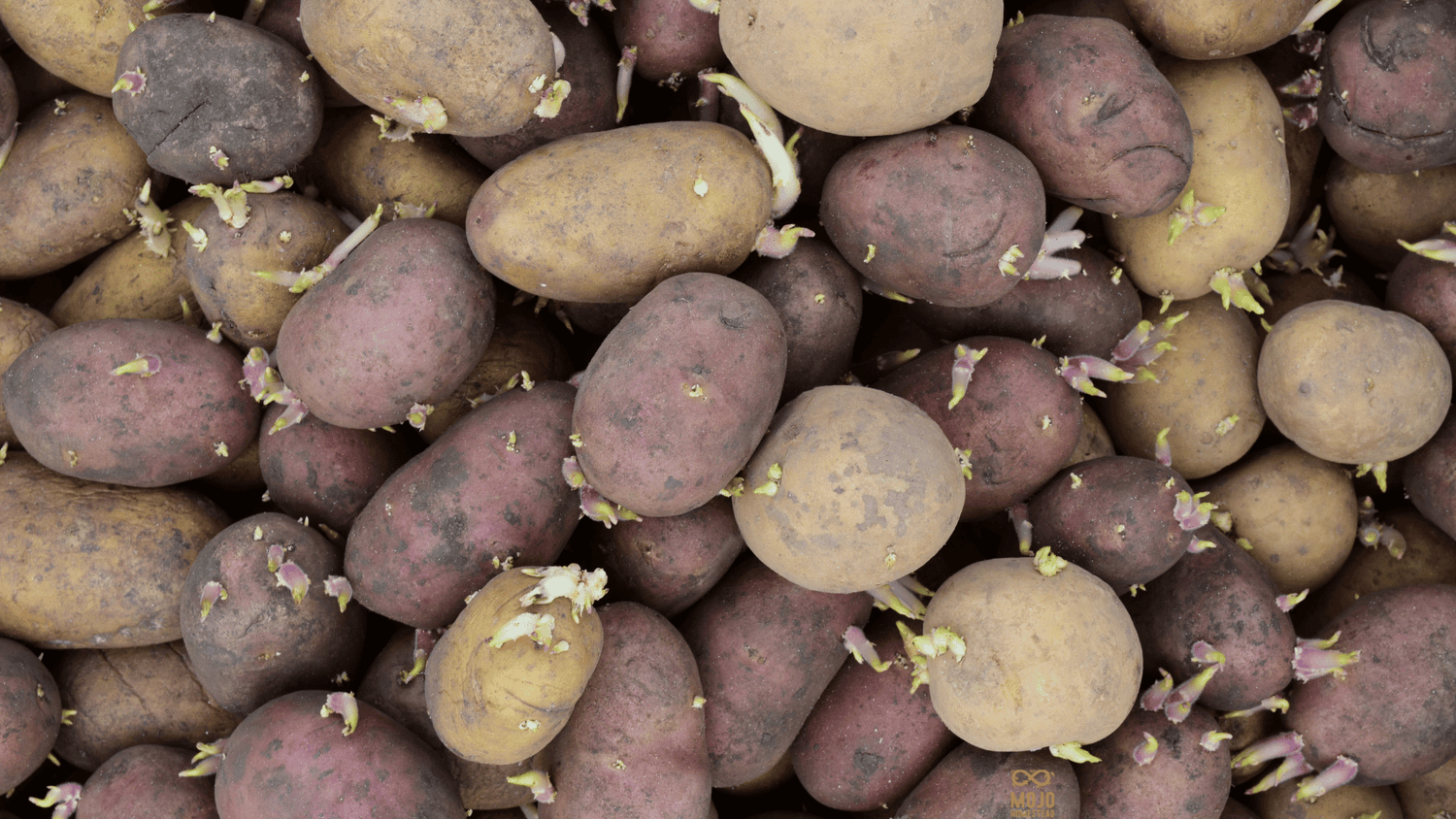 Potatoes grow from seed potatoes — and what you're looking for are the "eyes." Those little dimpled sprout points on the surface.
