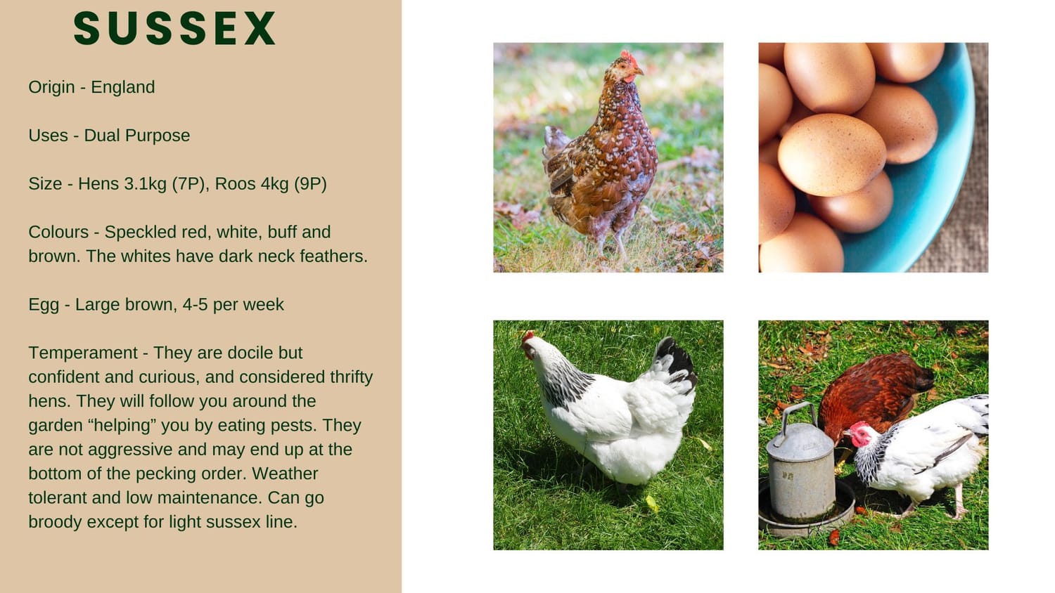 If you want eggs and meat potential—Sussex are a ripper choice.